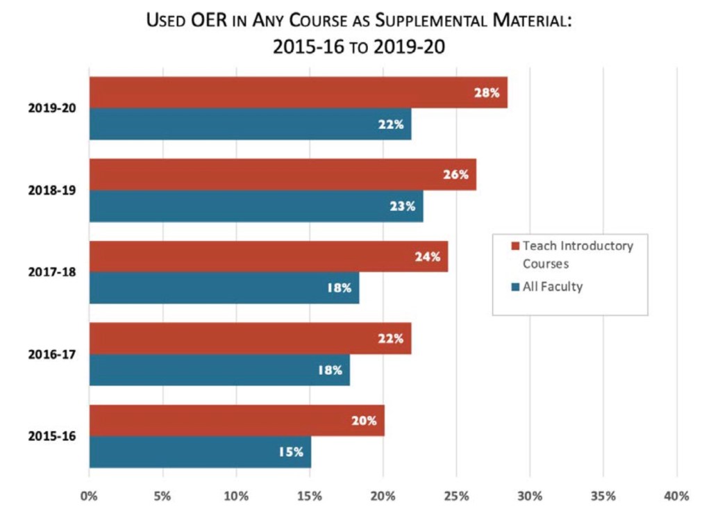 It is interesting to note that a recently published US report found that use of OER as required course material during the COVID crisis did not increase (Seaman & Seaman, 2021). This finding meant that based on comparative data, 2020 was the first year that growth in OER awareness among higher educators was not coupled with growth in adoption.