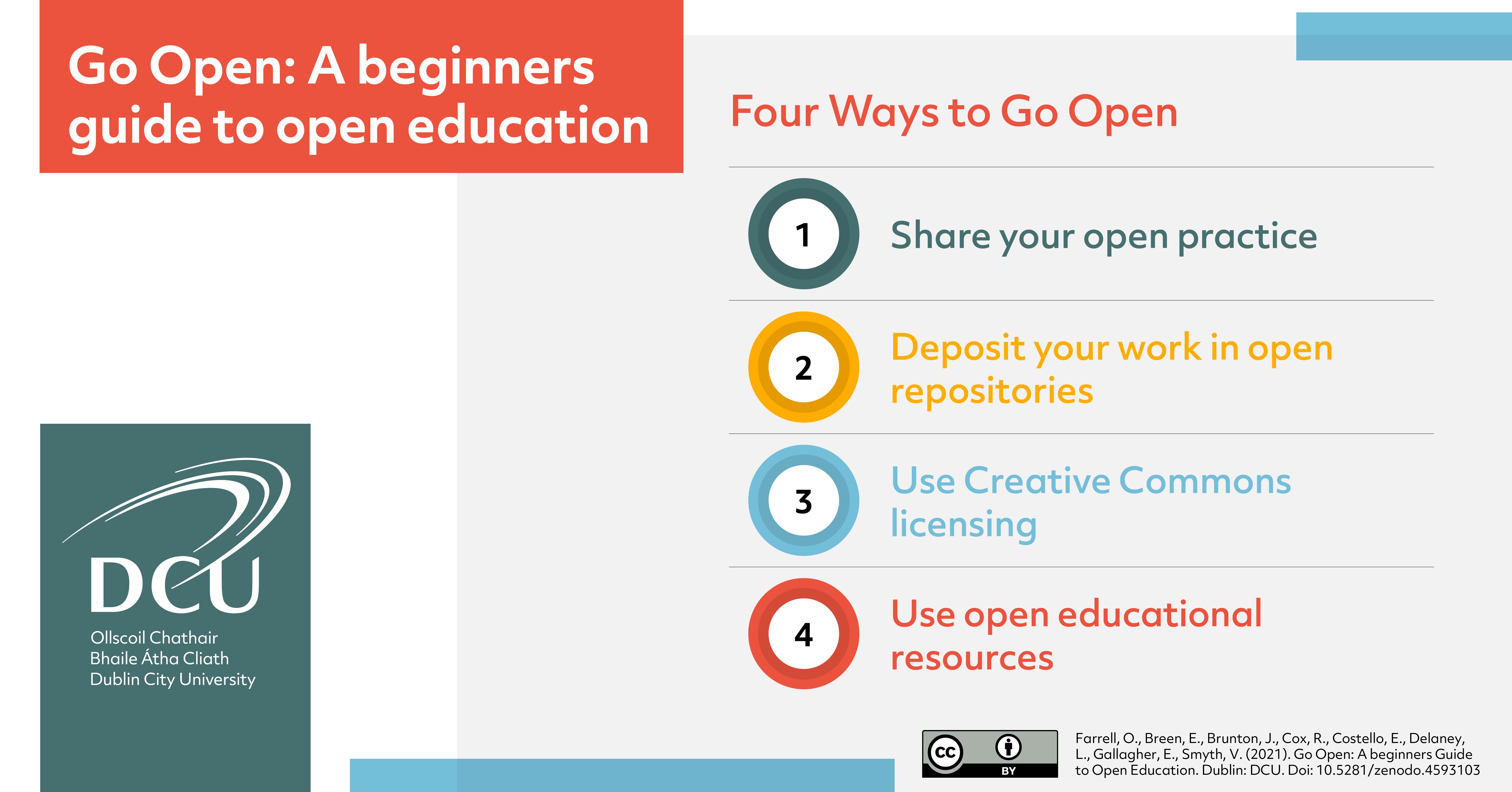 The Go Open project is a collaborative initiative based in Dublin City University (DCU) comprising a team from the DCU Library, Open Education Unit and the Digital Learning Design Unit.