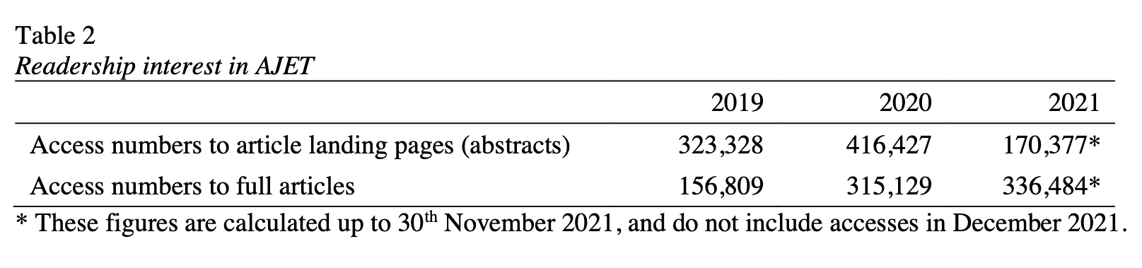 Bibliometrics data for AJET