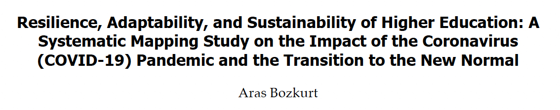 Bozkurt, A. (2022). Resilience, adaptability, and sustainability of higher education: A systematic mapping study on the impact of the Coronavirus (COVID-19) pandemic and the transition to the new normal. Journal of Learning for Development, 9(1), 1-16. https://doi.org/10.56059/jl4d.v9i1.590