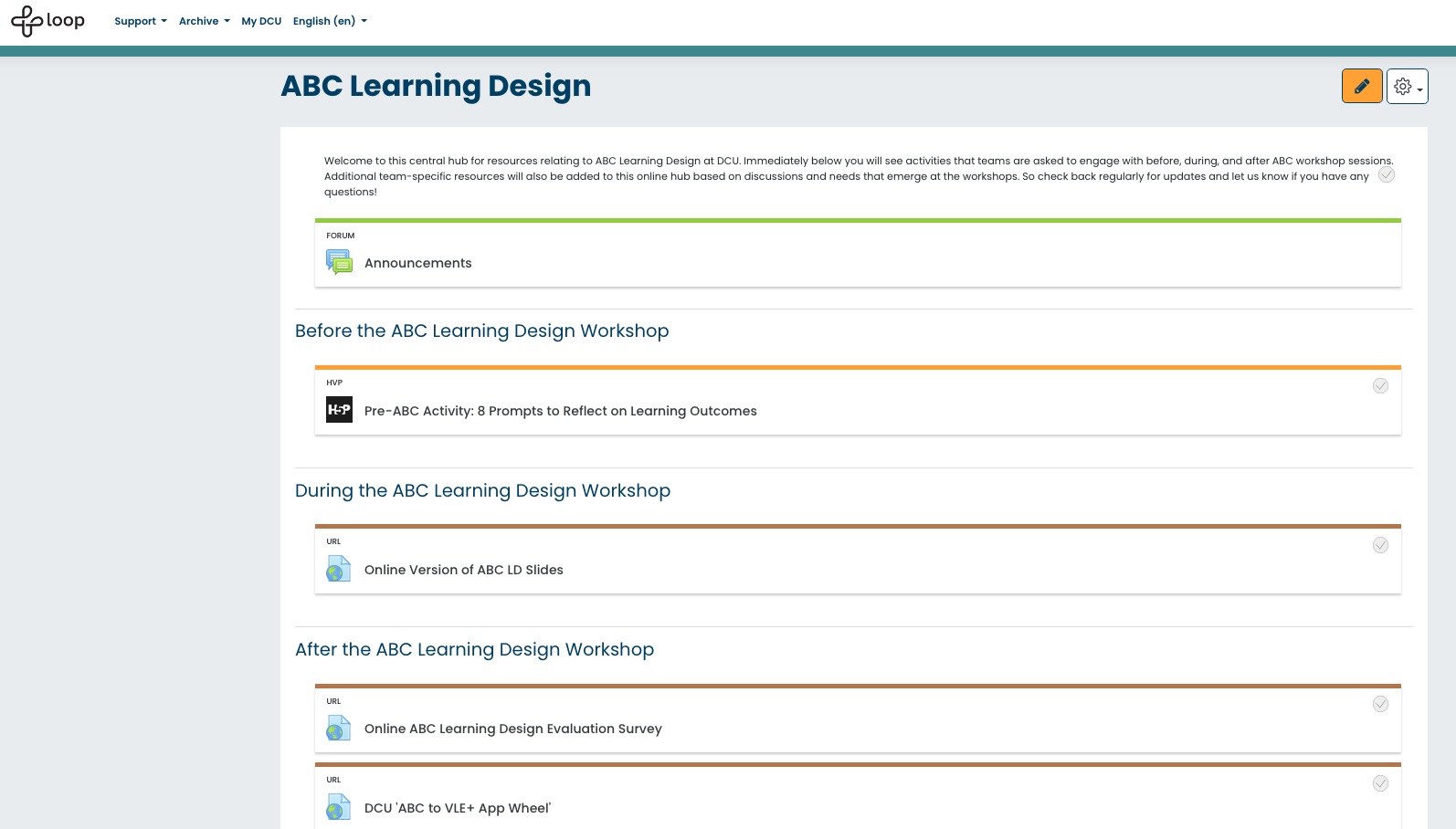 To assist with implementation of proposed designs, follow up resources including the DCU ABC to VLE+ App Wheel are forwarded to staff after workshops. These are shared on our in-house ABC hub along with curated guidance on key supports (e.g. online resources and workshops) available at DCU relevant to workshop discussions.