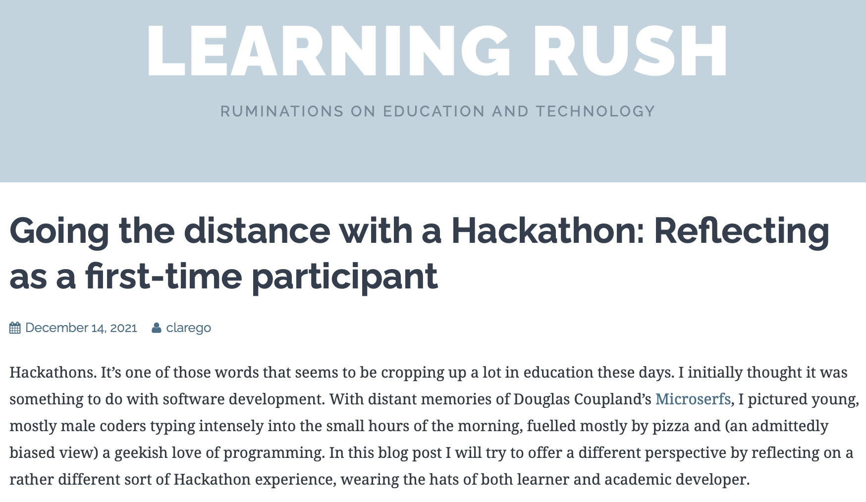 But in terms of giving an experience of a real-life hackathon, showcasing its potential as an engaging format, and providing a space for learning about very different but topical approaches to assessment, we are satisfied that the objectives were met. While important not to overdo use of the format, this type of event seemed to work well as a form of professional development, in our view, and it’s something that others might consider. Some promising impacts include:
